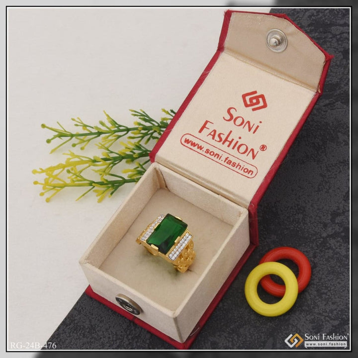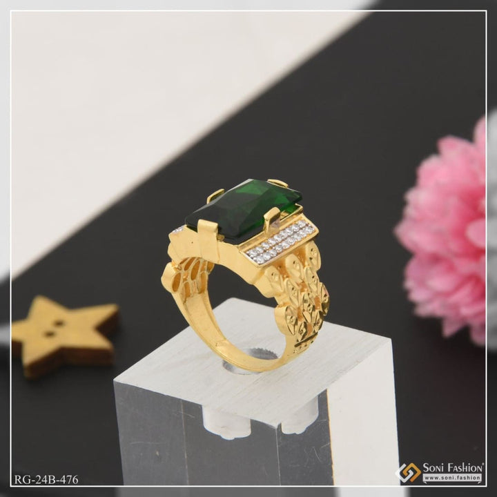 1 Gram Gold Plated Green Stone Attention-getting Design Ring For Men - Style B476