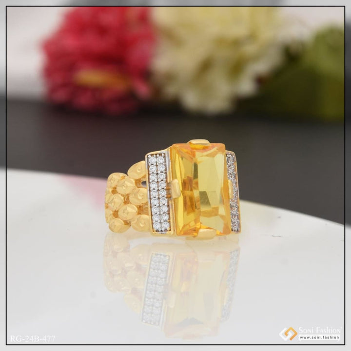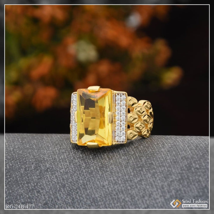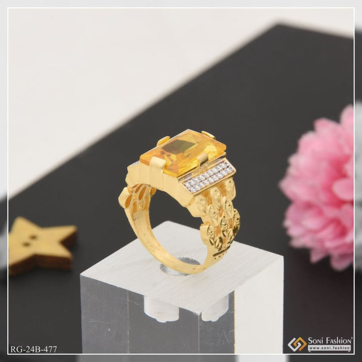 1 Gram Gold Plated Yellow Stone Etched Design High-quality Ring For Men - Style B477
