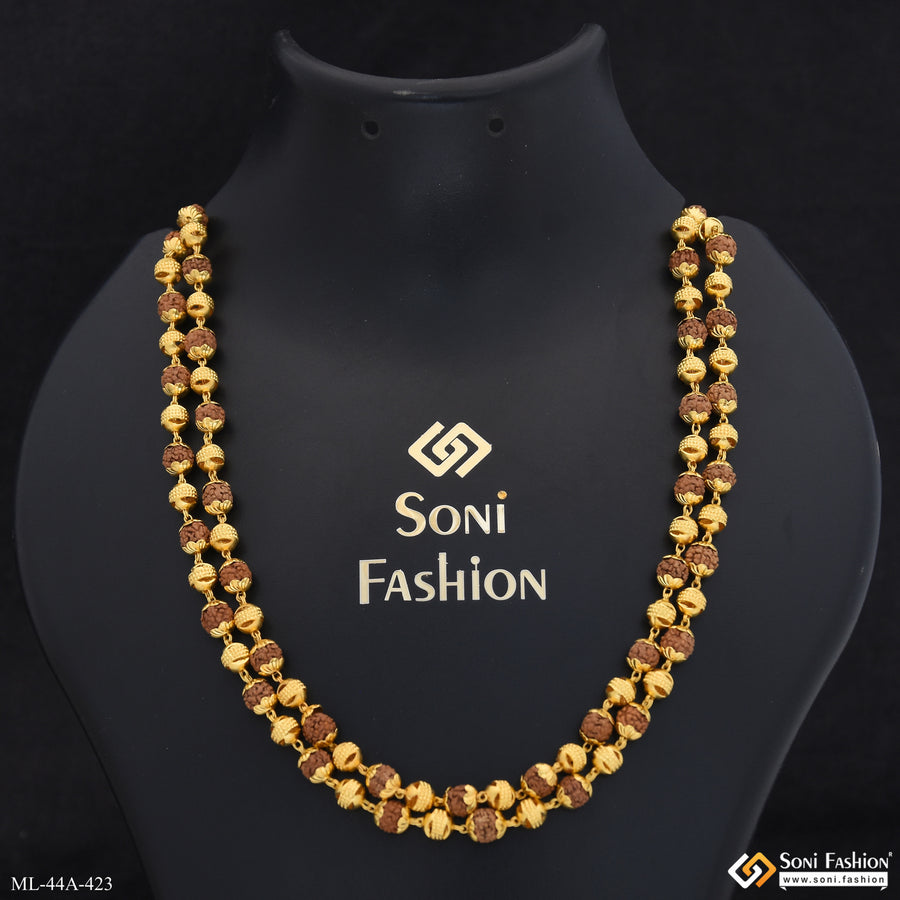 1 Gram Gold Plated Latest Design Rudraksha Mala with Bracelet for Men (MB-A303-C543)