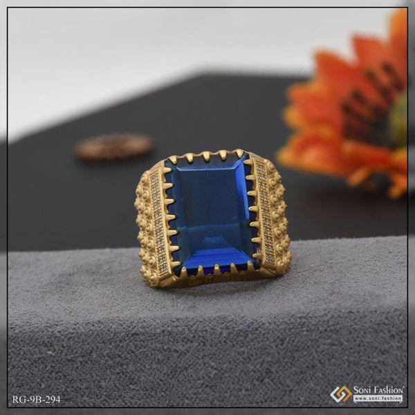 1 Gram Gold Plated Blue Stone Gorgeous Design Ring for Men - Style B164