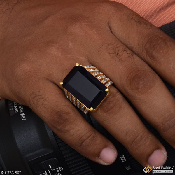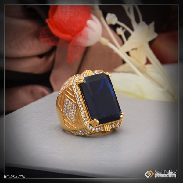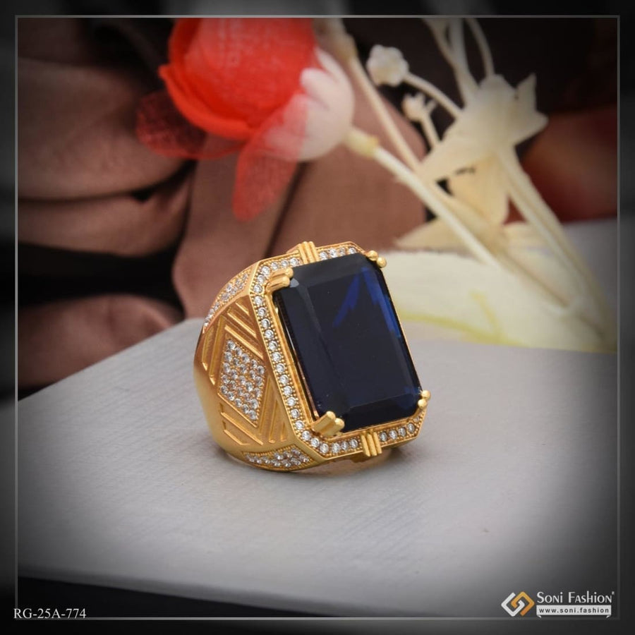 1 Gram Gold Plated Blue Stone with Diamond Best Quality Ring for Men - Style A815