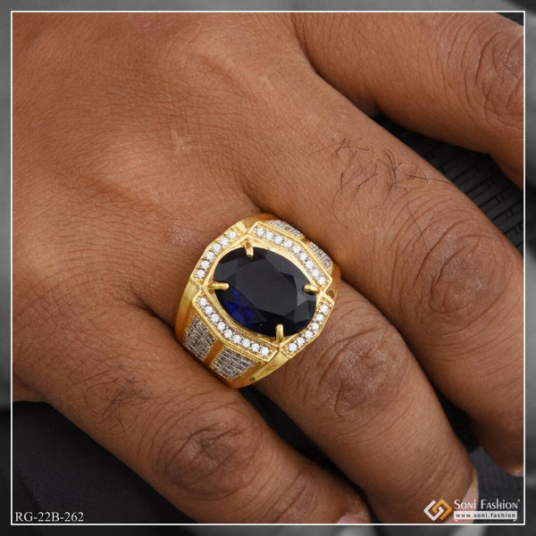 1 Gram Gold Forming Blue Ring with Diamond Gorgeous Design Ring for Men - Style A987