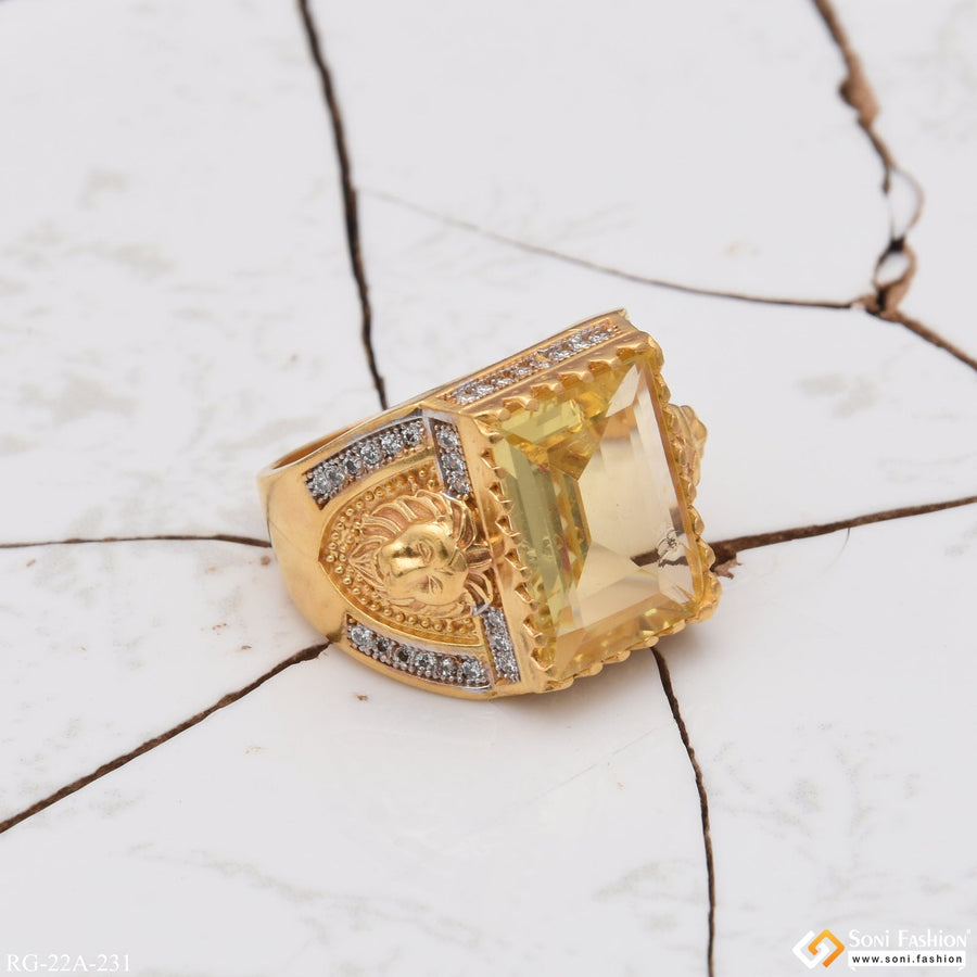 1 Gram Gold Plated Om with Diamond Design High-Quality Ring for Men - Style B425