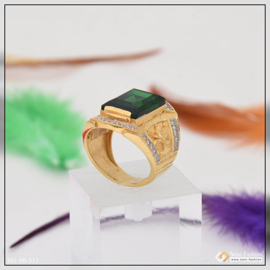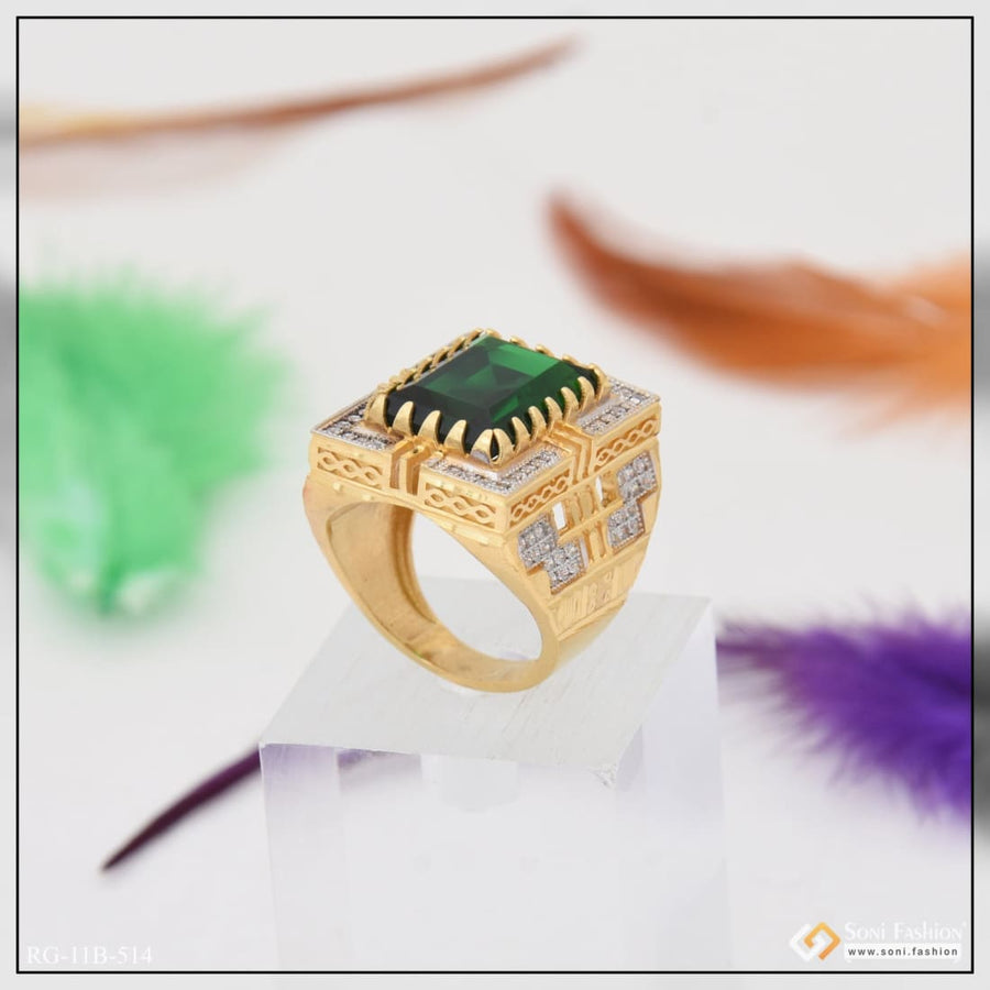 Elevate your style with this 1 Gram Gold Plated Yellow Stone Ring for men. Crafted in brass with a miligram gold plating, it features a matte finish and a detailed...