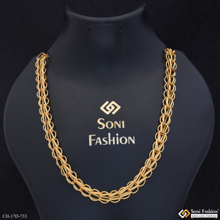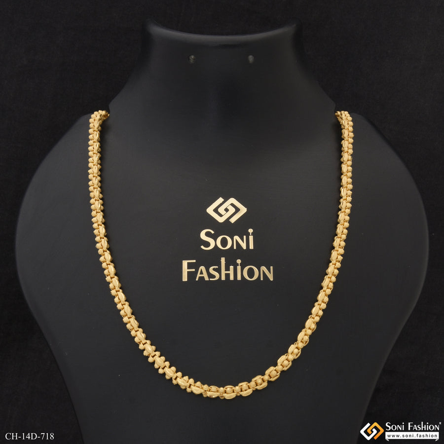 1 Gram Gold Plated Fabulous Design Biscuit Chain for Men - Style E334