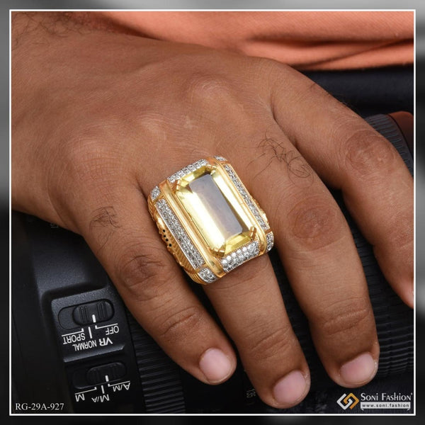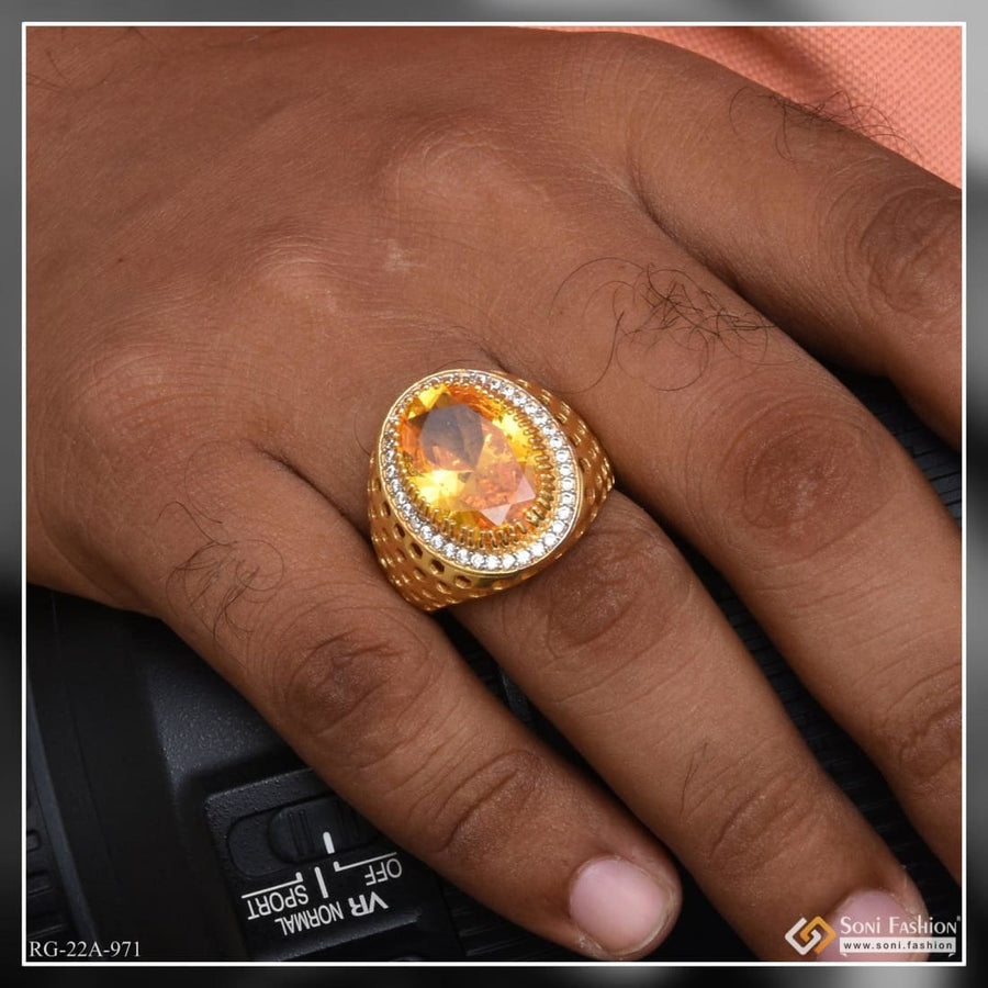 1 Gram Gold Plated Yellow Stone Attention-Getting Design Ring for Men - Style A614