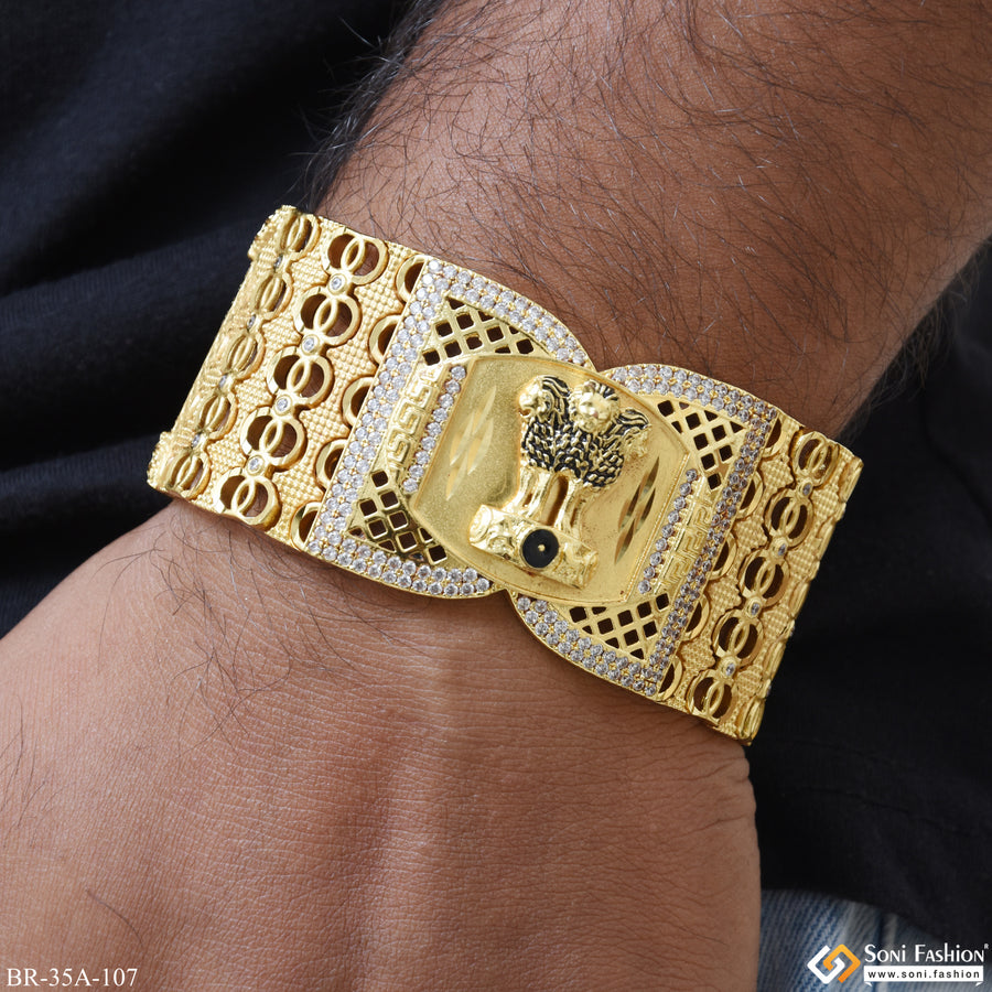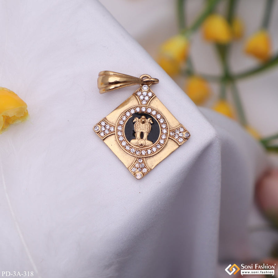 1 Gram Gold Plated Mudra With Diamond Antique Design Pendant For Men - Style A964