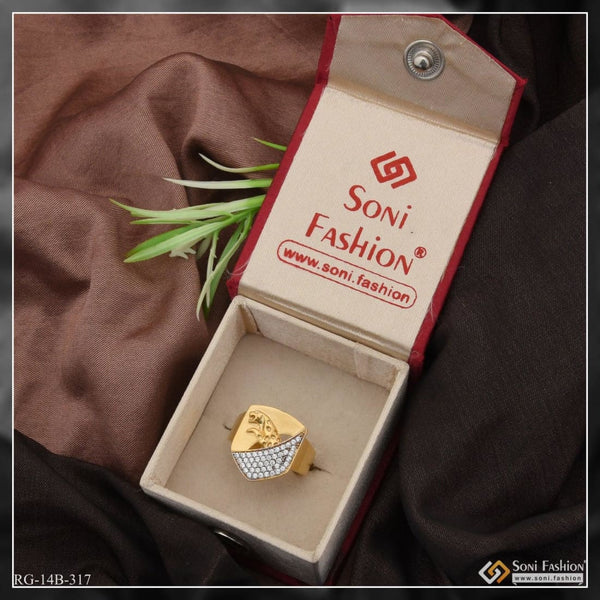 1 Gram Gold Plated Jaguar with Diamond Fashionable Design Ring for Men - Style B317