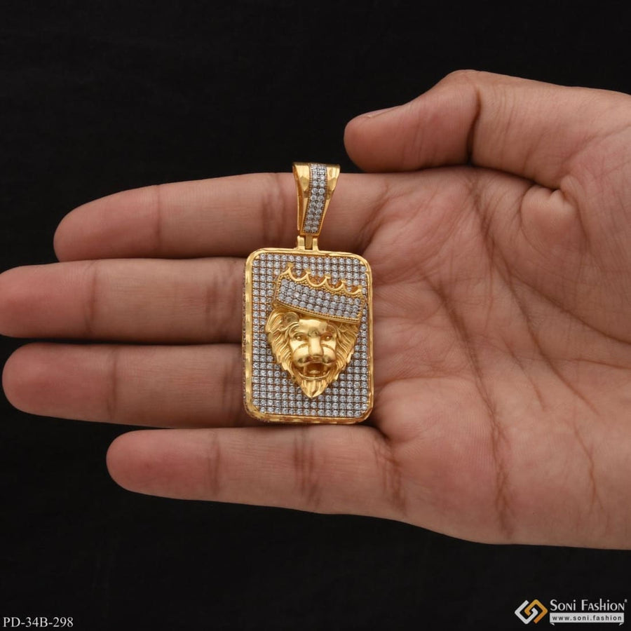 1 Gram Gold Plated Crown On Lion With Diamond Best Quality Pendant - Style B267