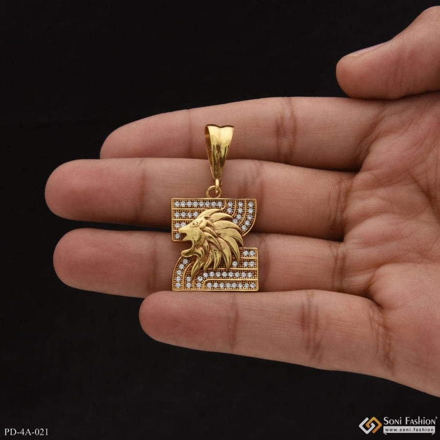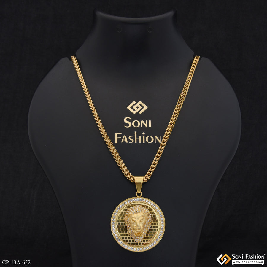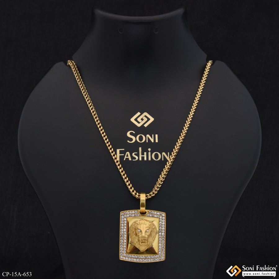 1 Gram Gold Plated Lion with Diamond Gorgeous Design Pendant for Men - Style A994