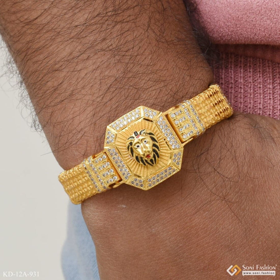 1 Gram Gold Plated Lion with Diamond Awesome Design Kada for Men - Style B085