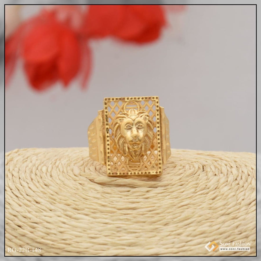 This 1 Gram Gold Plated Lion Distinctive Design Best Quality Ring for Men is crafted from vintage and textured shining brass with a miligram gold plated rhodium finish. Its Rajwadi...