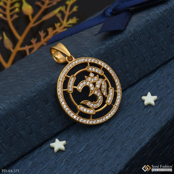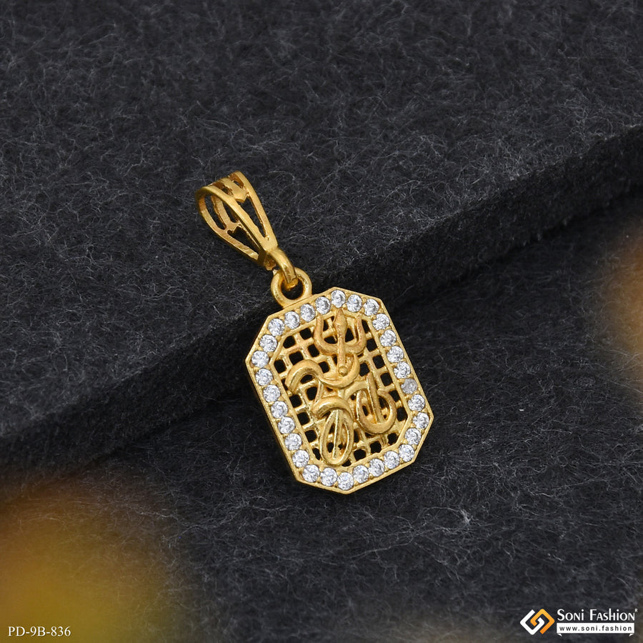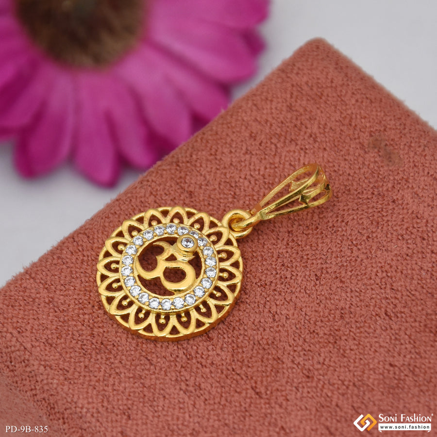 1 Gram Gold Plated Om With Diamond Glamorous Design Pendant For Men - Style B486