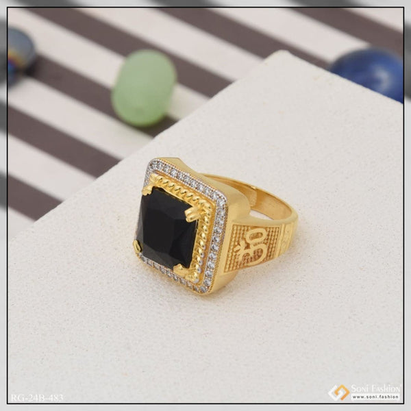 1 Gram Gold Plated Black Stone with Diamond Latest Design Ring for Men - Style B483