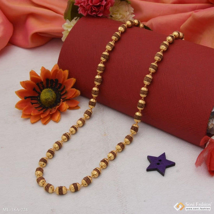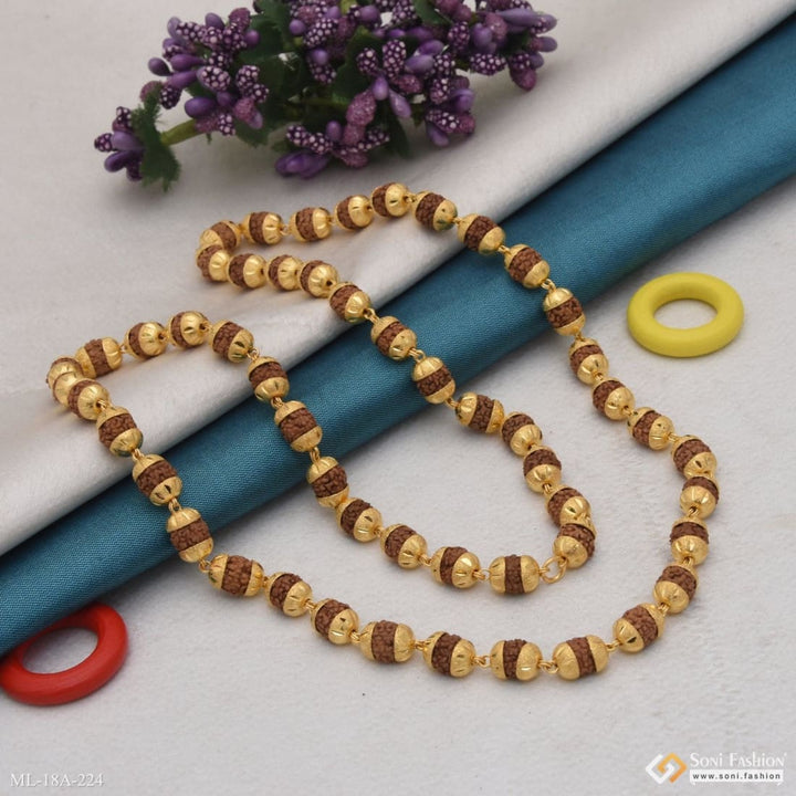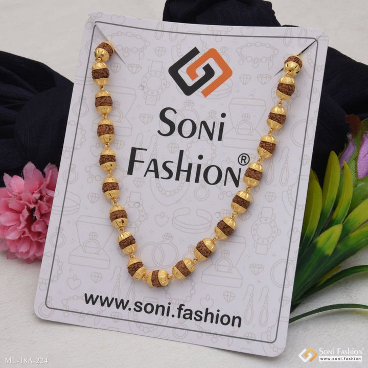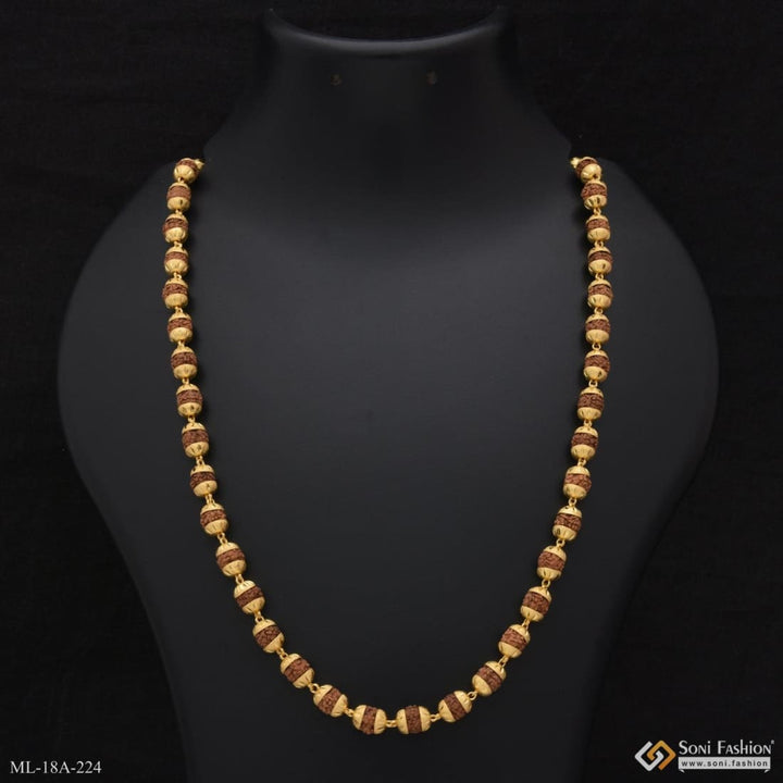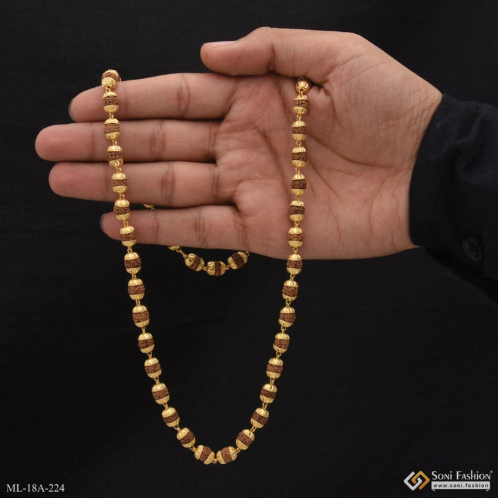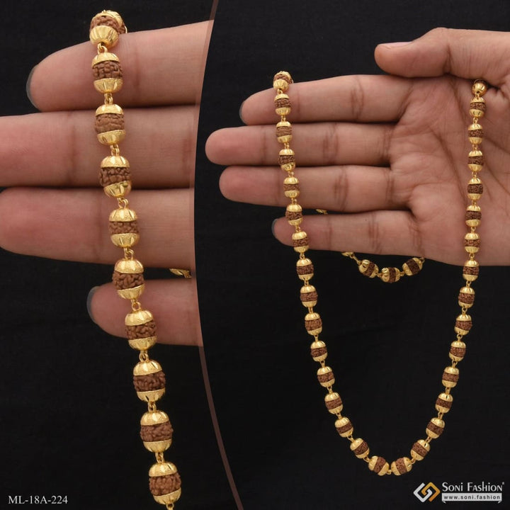 1 Gram Gold Forming V Cut Artisanal Design Rudraksha Mala for Men - Style A224