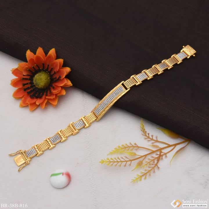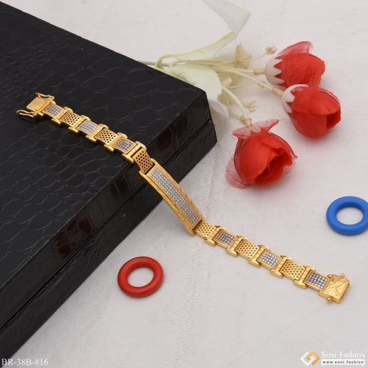 1 Gram Gold Forming Fashionable Design with Diamond Bracelet for Men - Style B816