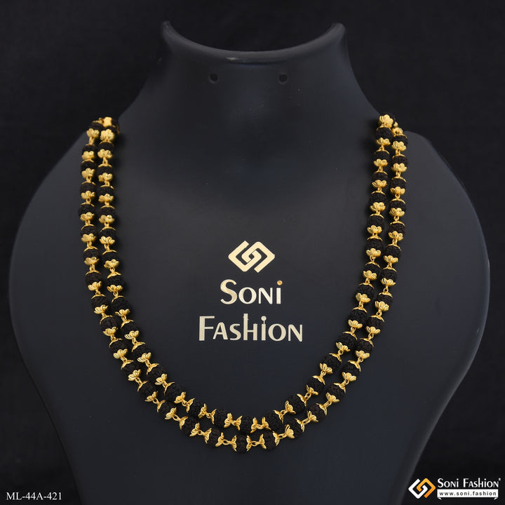 1 Gram Gold Plated 2 Line Rudraksha Mala for Men - Style A421