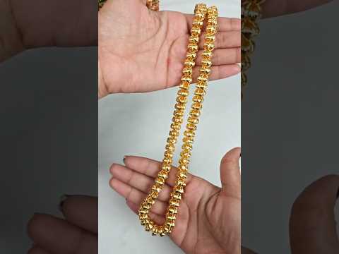 Crafted in shining brass with a miligram gold plating, this antique Rajwadi chain for men exudes timeless charm. The intricate filigree design is showcased on a 21 inch heart-shaped chain, adding a touch of elegance to any outfit. Elevate your style with this exquisite golden chain.