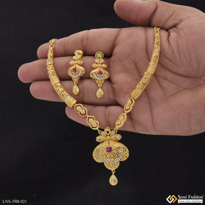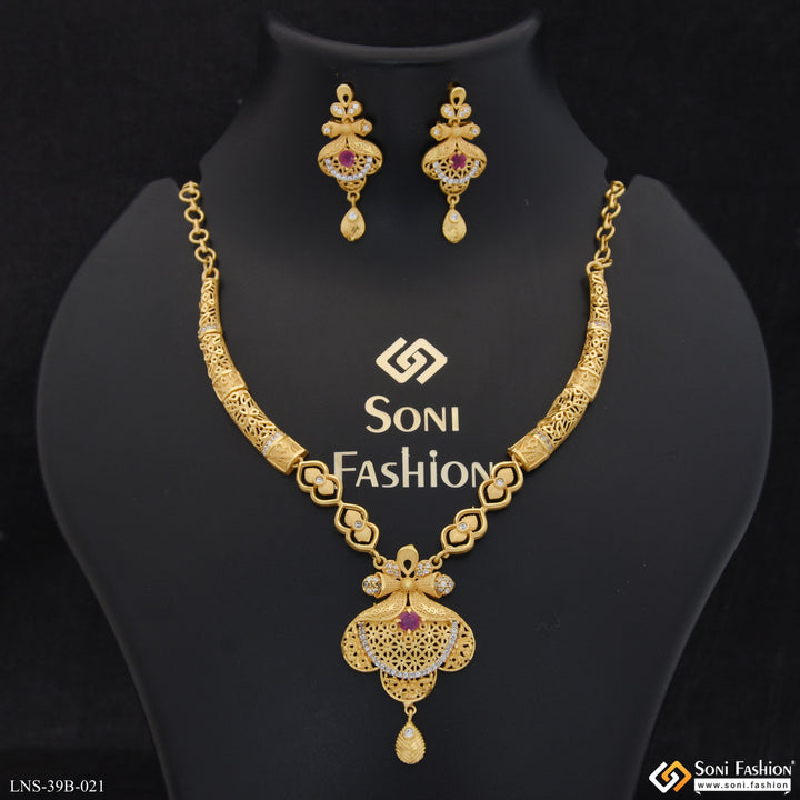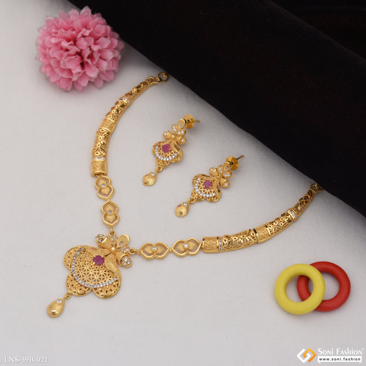 1 Gram Gold Plated Brilliant Design Necklace Set for Women - Style B021