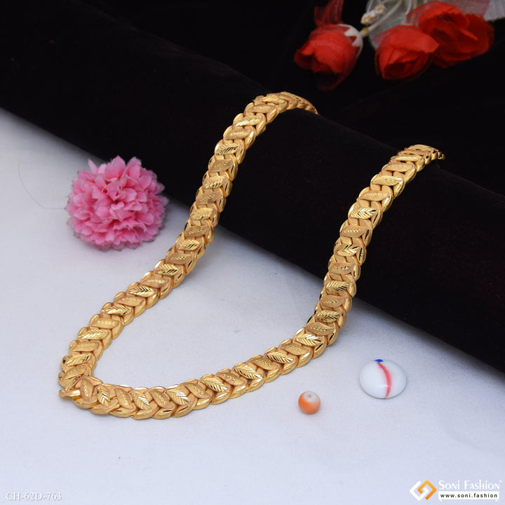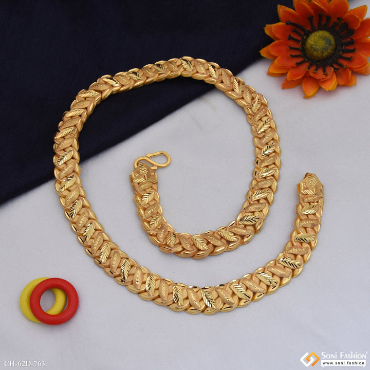 Elevate your style with our 1 Gram Gold Plated Delicate Design Pokal Chain. The shining royal pokal chain is crafted with miligram gold and features a matt finish with a filigree...