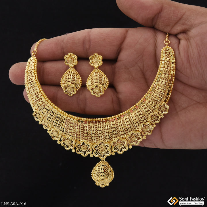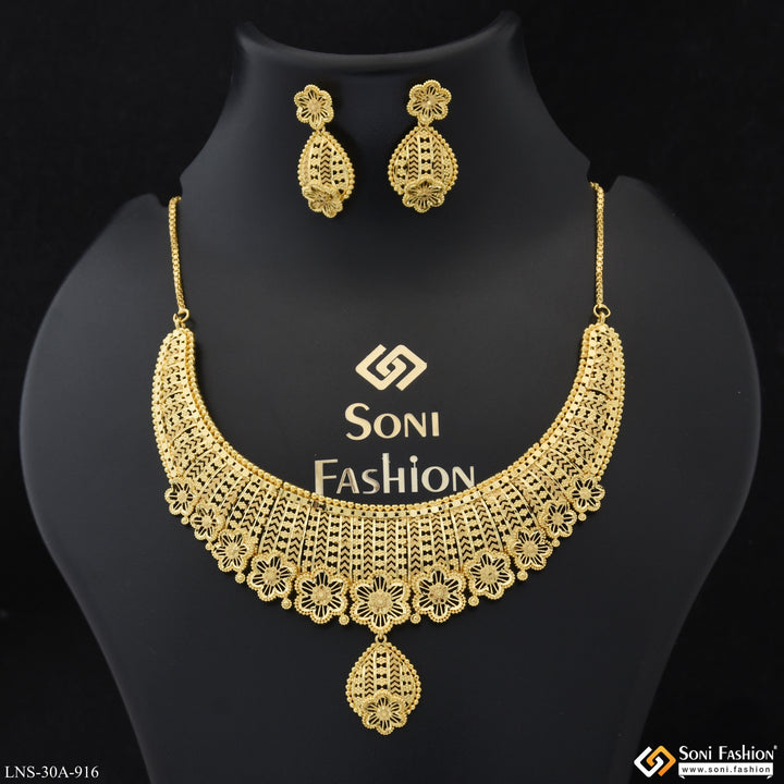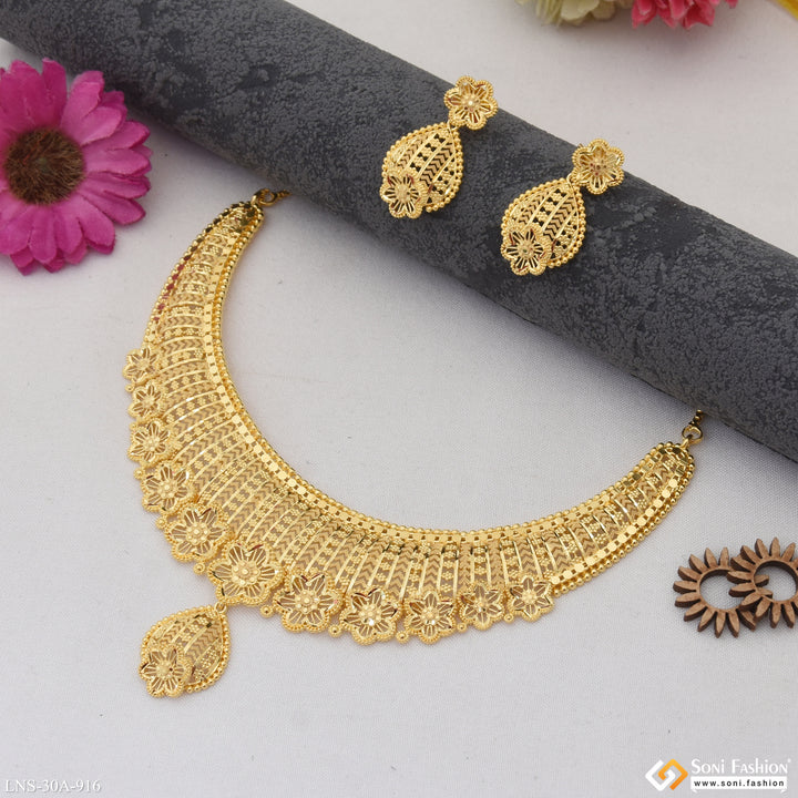1 Gram Gold Plated Fashionable Necklace Set for Women - Style A916