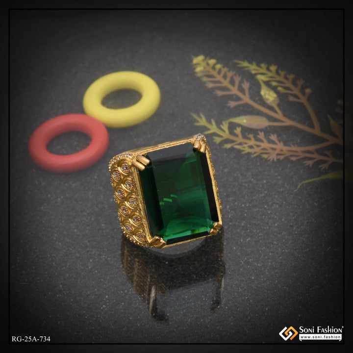 1 Gram Gold Plated - Green Stone Finely Detailed Design Ring for Men - Style A734