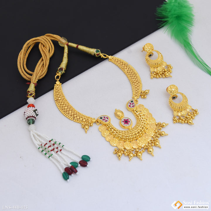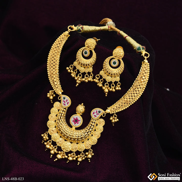 1 Gram Gold Plated Latest Design Necklace Set for Women - Style B023