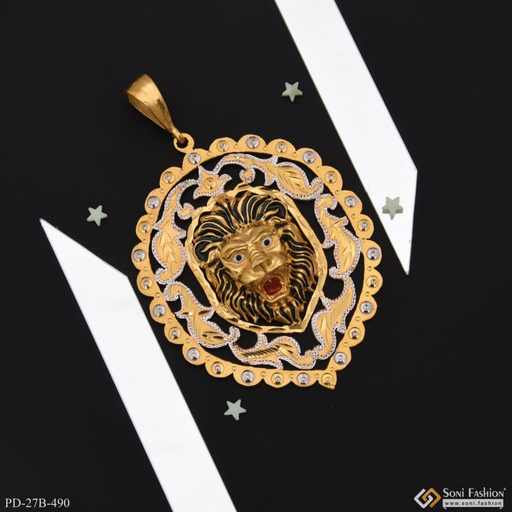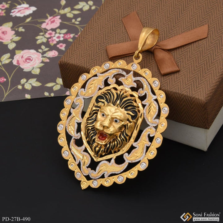 1 Gram Gold Plated Lion Best Quality Durable Design Pendant for Men - Style B490