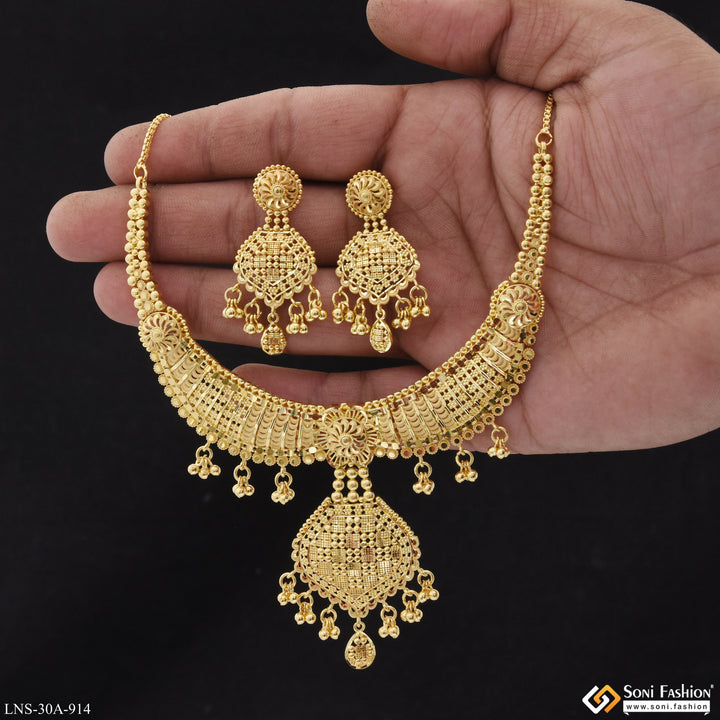 1 Gram Gold Plated New Style Necklace Set for Women - Style A914