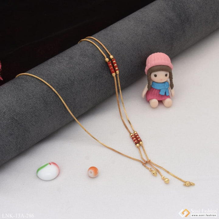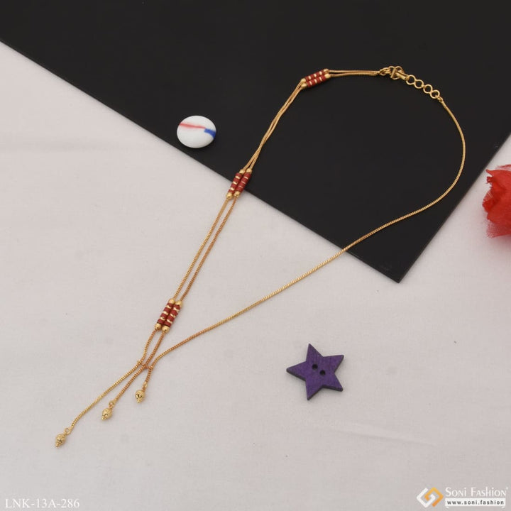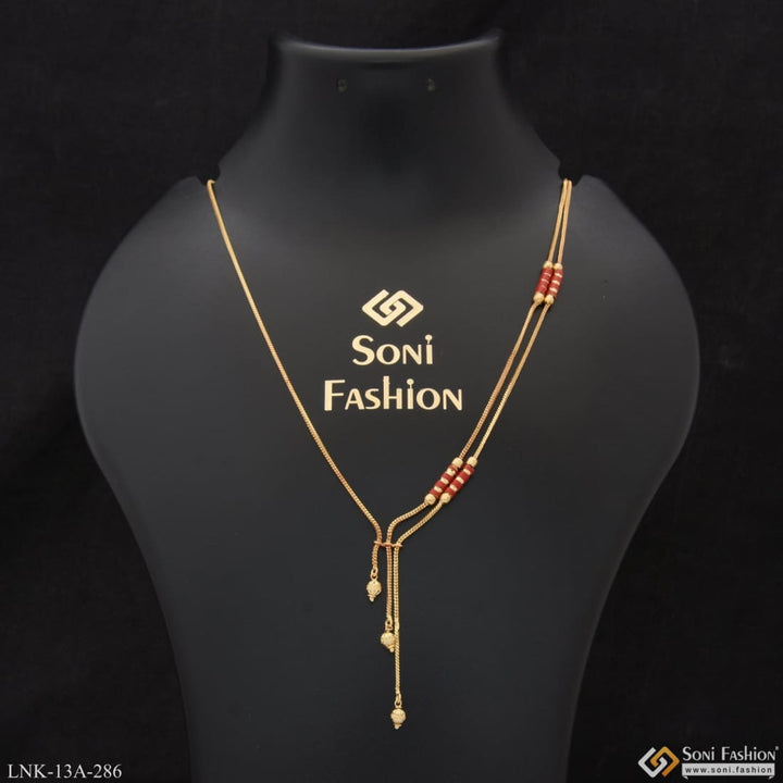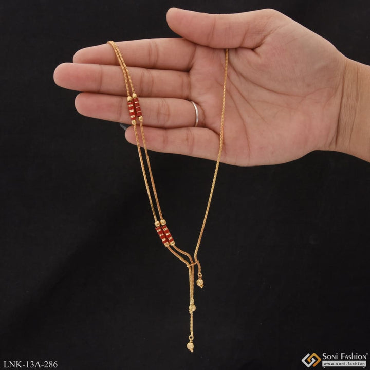 This gorgeous 1 Gram Gold Plated Pretty Design Classic Design Necklace for Ladies is an exclusive handmade accessory crafted with miligram gold and brass. Featuring a beautiful textured design with a royal red color, it is designed to make a striking statement with its shining finish and latest trends. Be glamorous and stylish with this timeless piece.