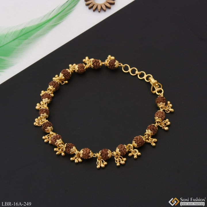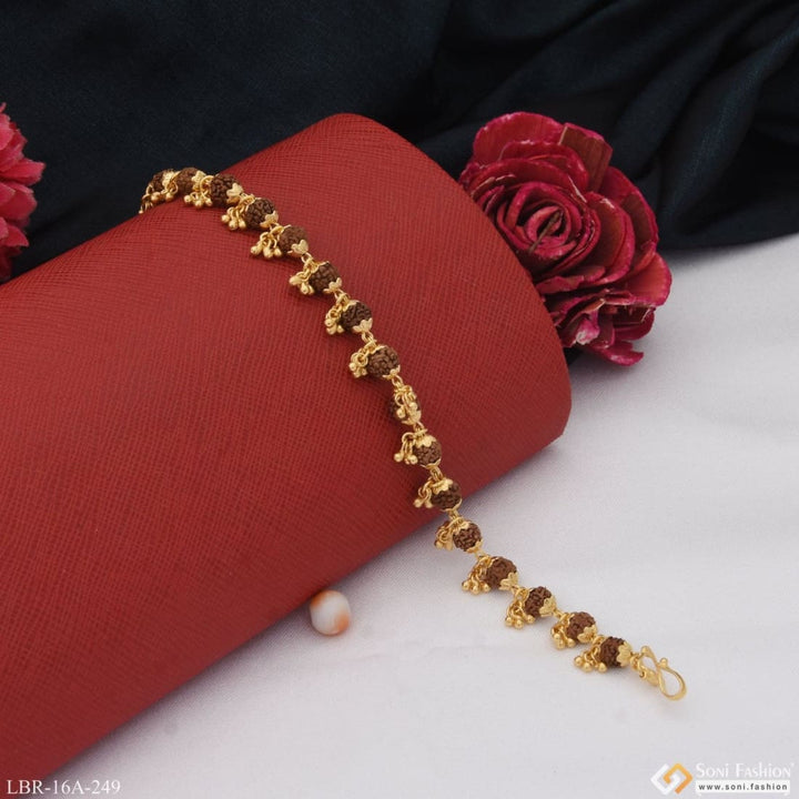 1 Gram Gold Plated Sparkling Design Rudraksha Bracelet for Ladies - Style A249