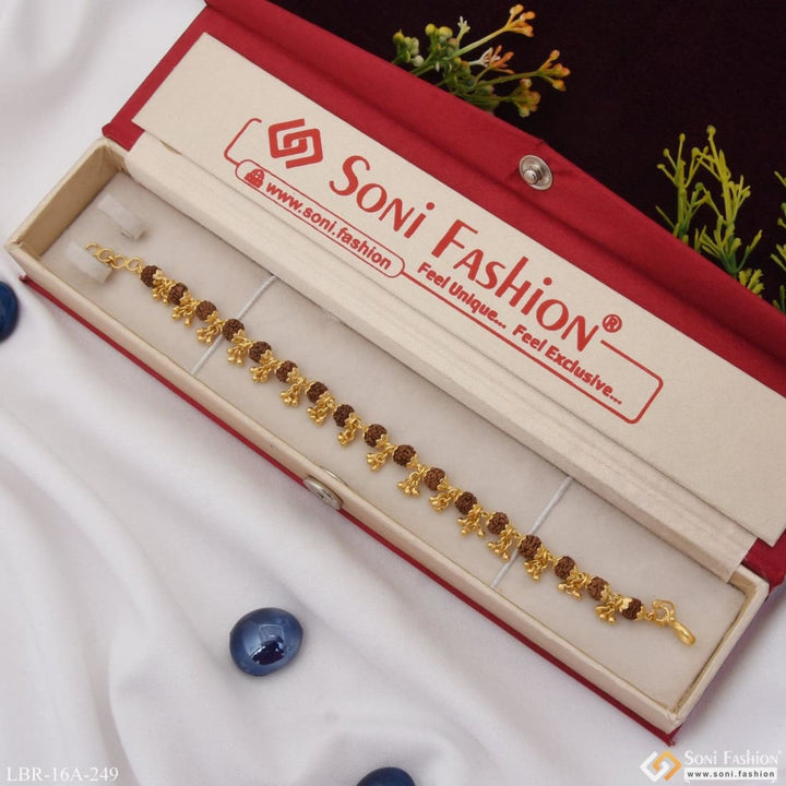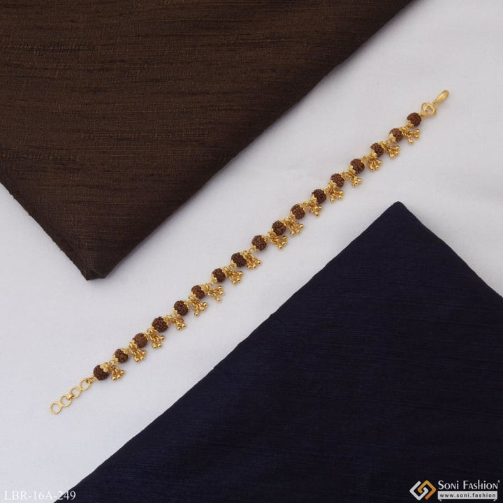 1 Gram Gold Plated Sparkling Design Rudraksha Bracelet For