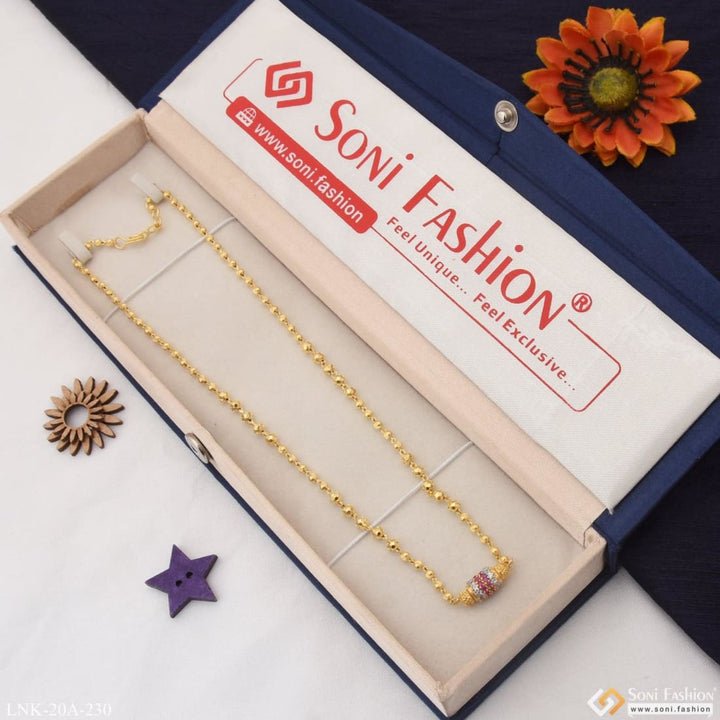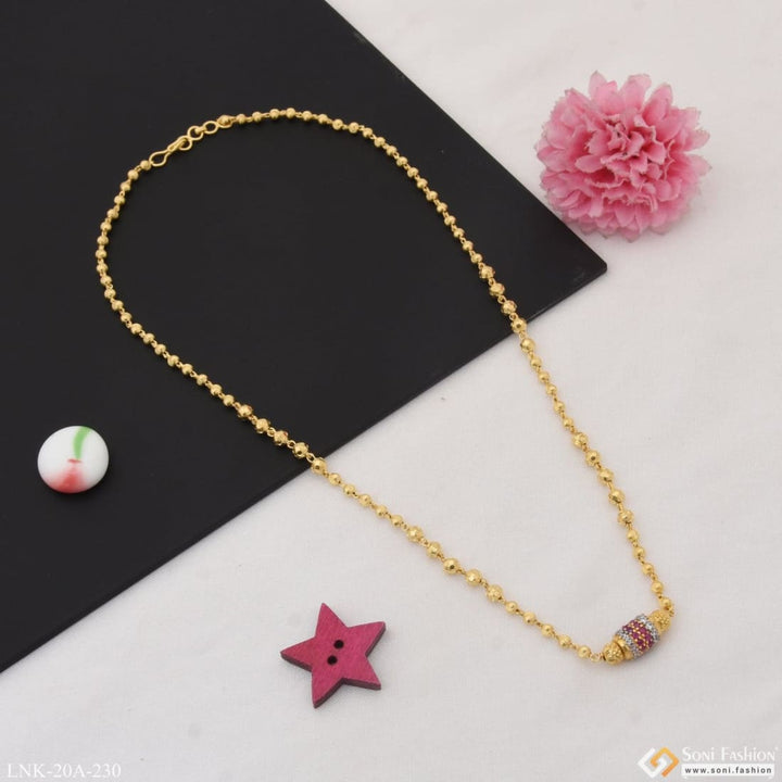 Introducing the 1 Gram Gold Plated with Diamond Lovely Design Necklace for Ladies, designed with textured, rhodium, and miligram gold for a vibrant shine. Featuring a personalized, graceful design with the latest trend, this necklace is crafted with a golden brass base and finished with a brilliant diamond for a unique look.