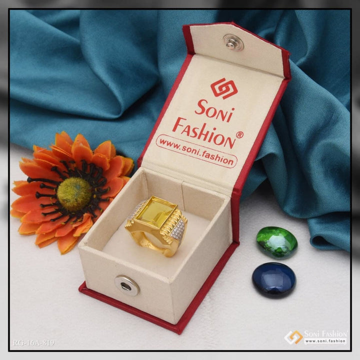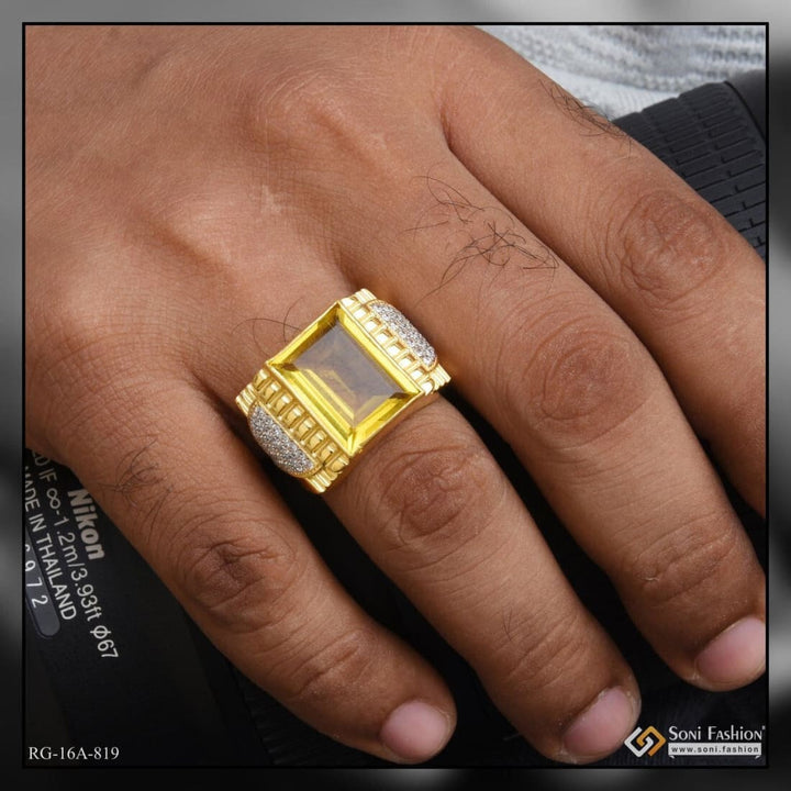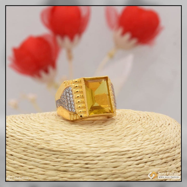 1 Gram Gold Forming Yellow Stone with Diamond Funky Design Ring for Men - Style A819