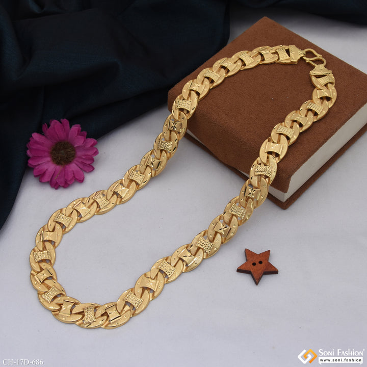 2 In 1 Gorgeous Design Gold Plated Pokal Chain for Men - Style D686
