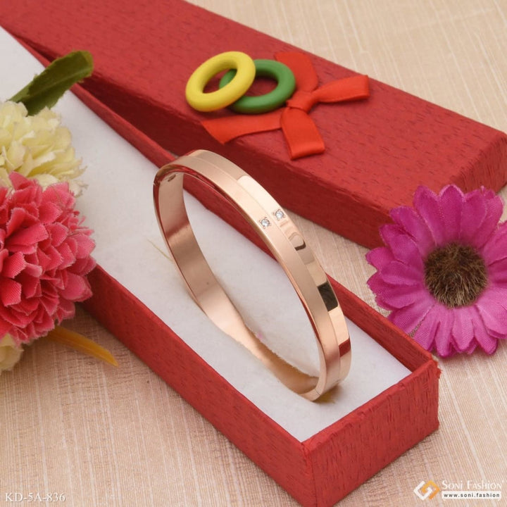 2 Line Unique Design Premium-grade Quality Rose Gold Kada For Men - Style A836