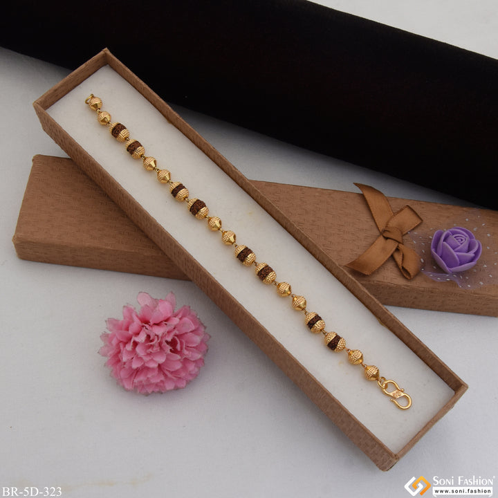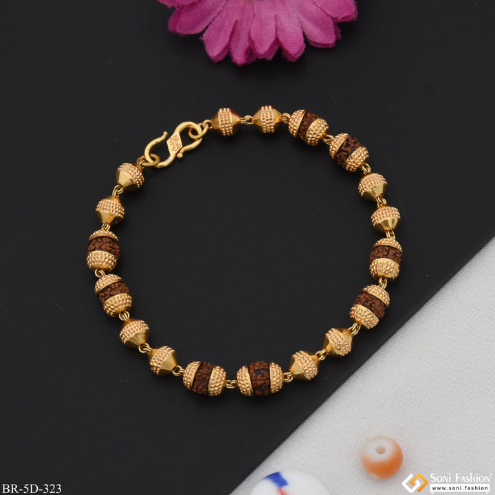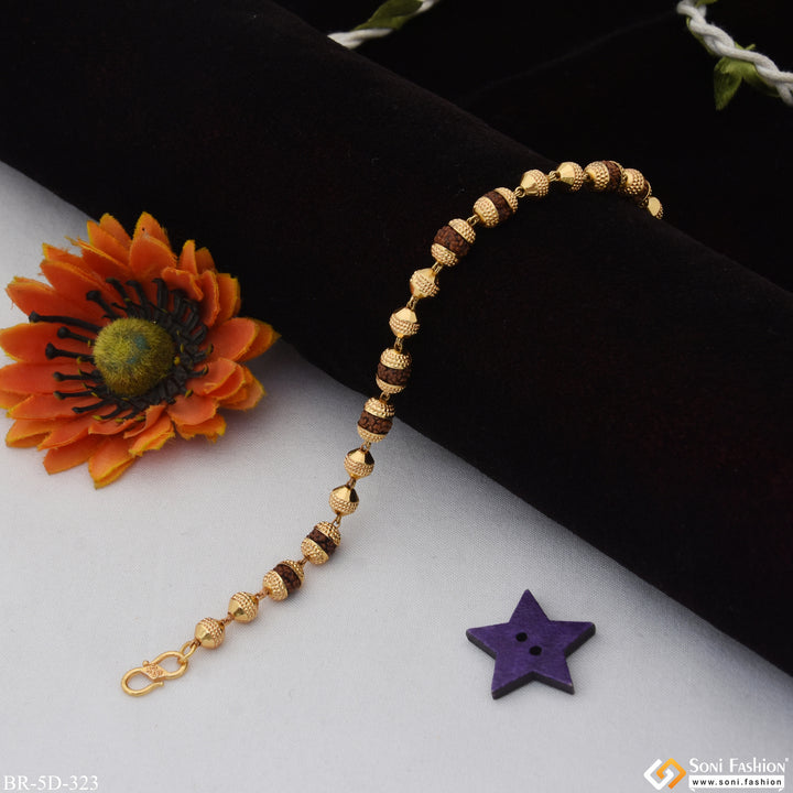 Antique Design Gold Plated Rudraksha Bracelet for Men - Style D323