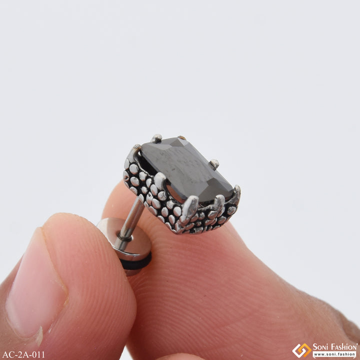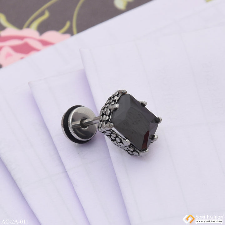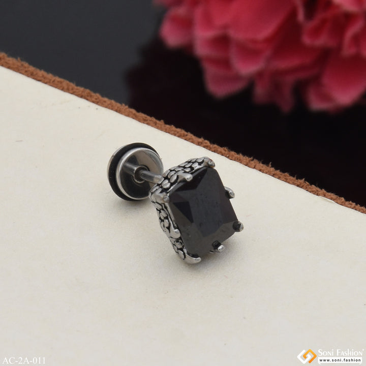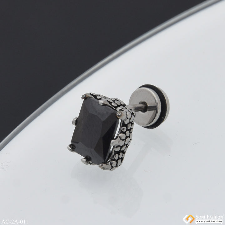 Black Stone Awesome Design Surgical Steel Stud Earring for Men (1 Pc) - Style A011
