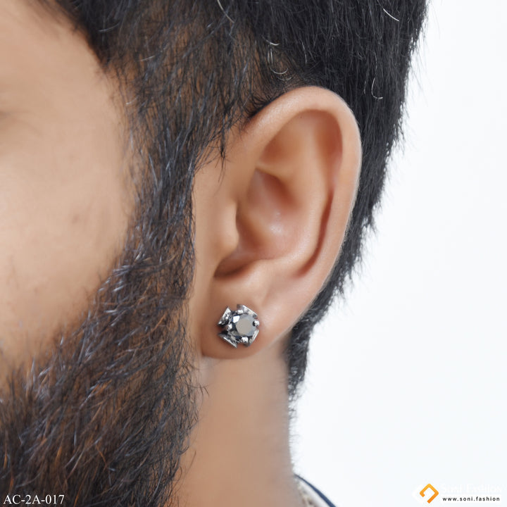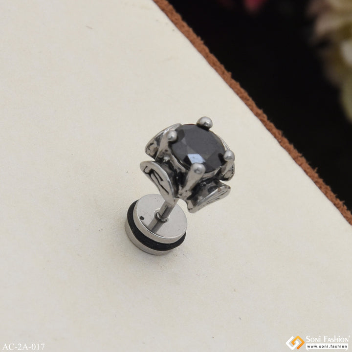 Black Stone Popular Design Surgical Steel Stud Earring for Men (1 Pc) - Style A017