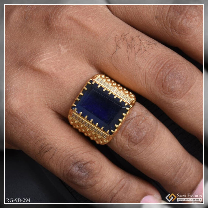 Blue Stone With Diamond Fashionable Design Gold Plated Ring For Men - Style B294
