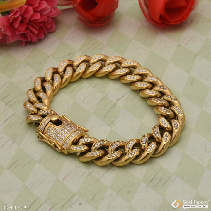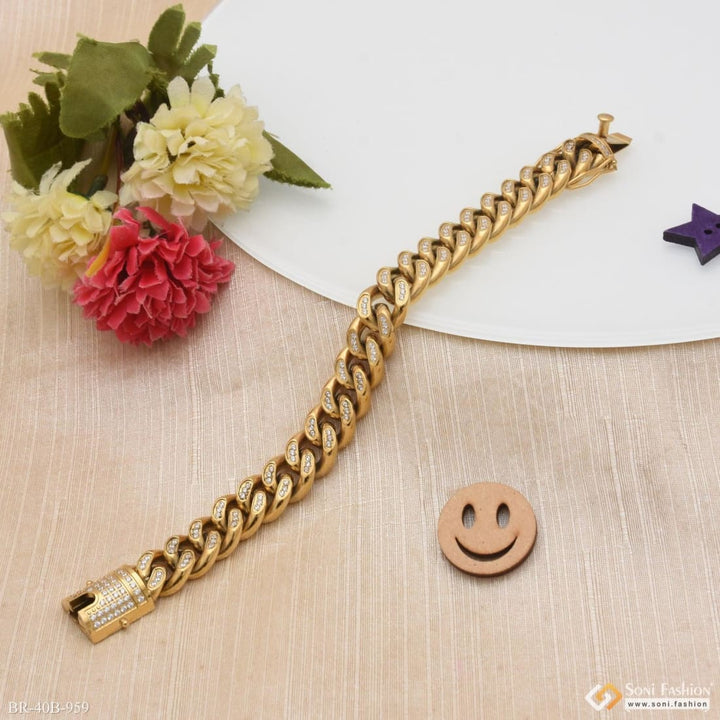 Cute Design Best Quality with Diamond Golden Color Bracelet for Men - Style B959