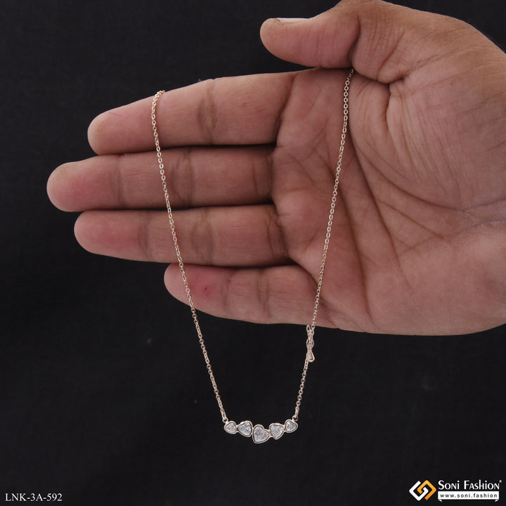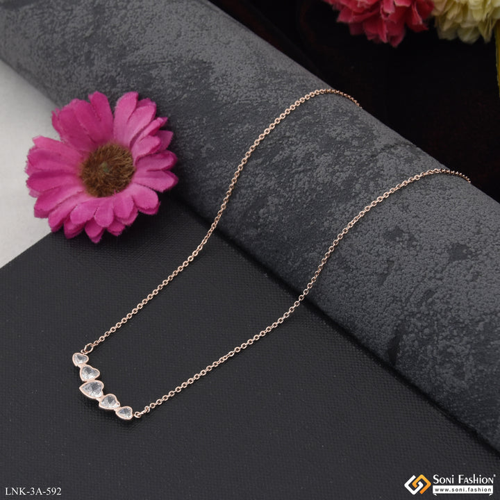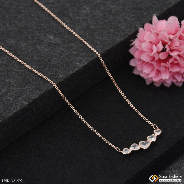 Expertly crafted with a shining stone and durable stainless steel, the Dazzling Design Rose Gold Color Necklace will add a touch of elegance to any outfit. Its rose gold color is the latest trend, and its hidden-reg plating ensures long-lasting shine. The heart pendant completes the look with a delicate charm.
