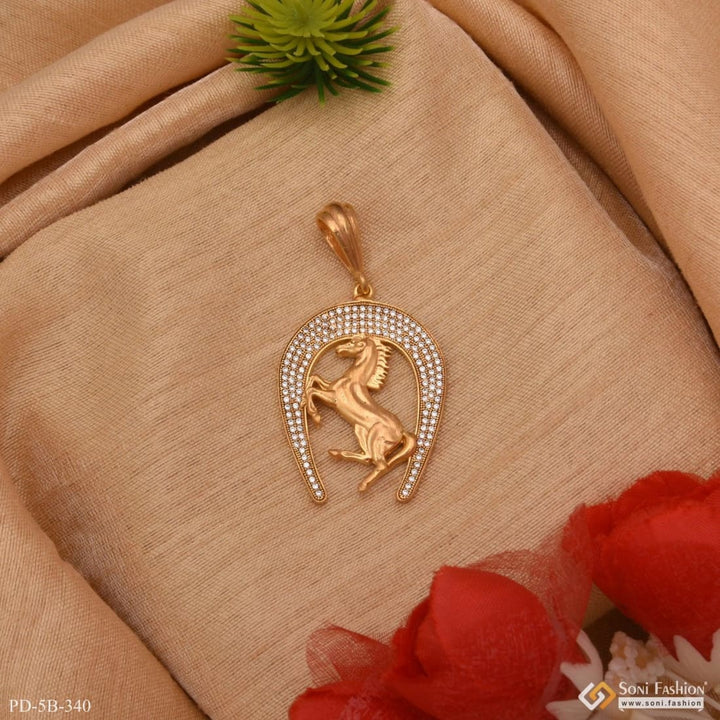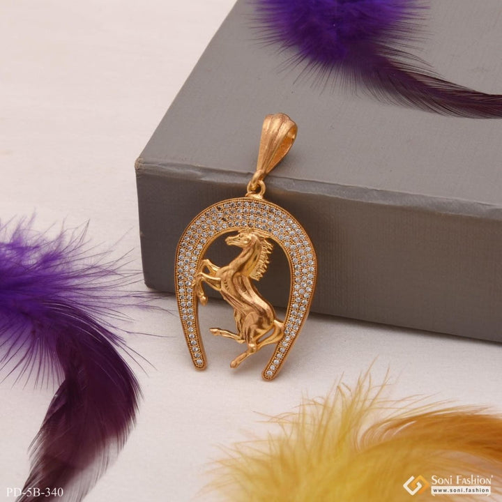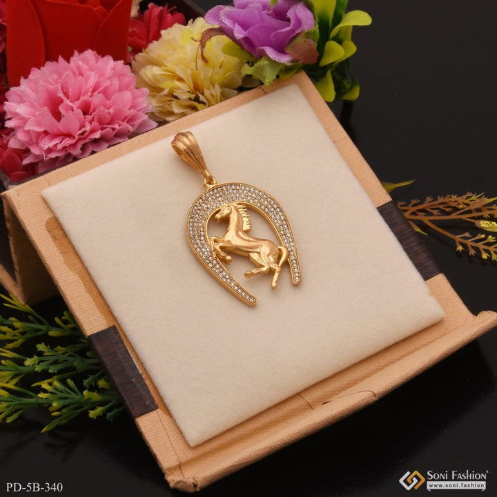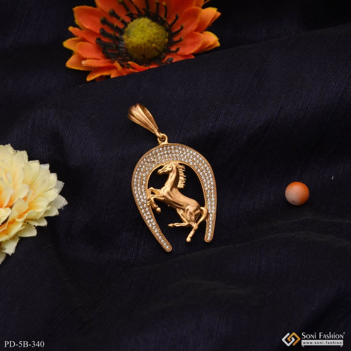 Horse With Diamond Cool Design Superior Quality Gold Plated Pendant - Style B340