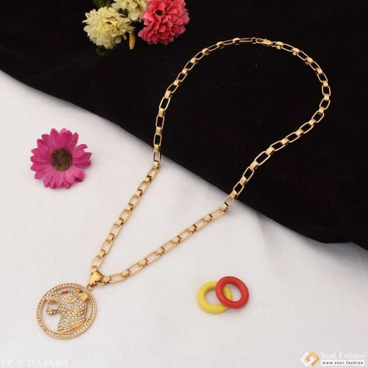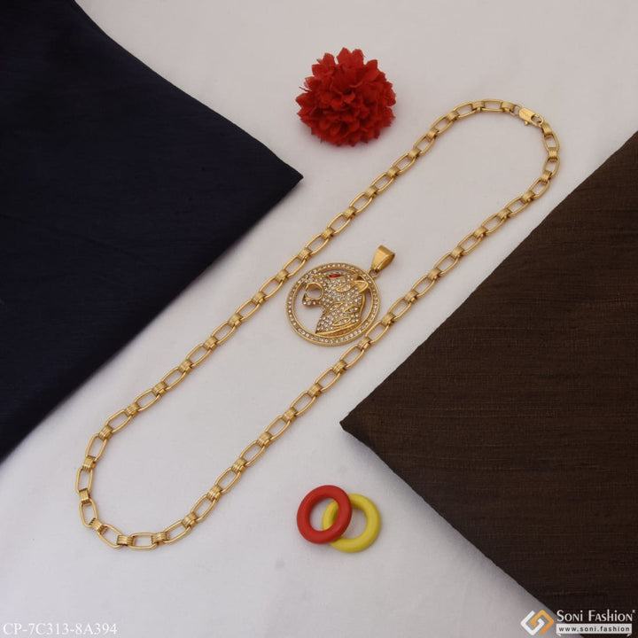 Jaguar Distinctive Design Best Quality Chain Pendant Combo for Men is an exquisite piece crafted with stainless steel, textured, shining, and royal elements. The combo features a round pendant with a red chain and a golden chain pendant featuring a diamond and a Rajwadi design. Along with the latest and hip hop styles of Jaguar, this stunning combo is sure to make a statement.