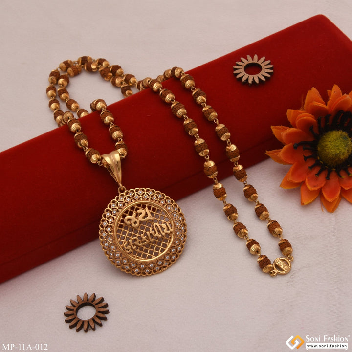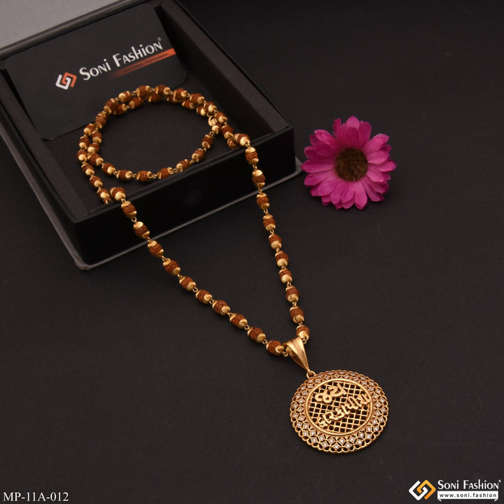 Jay Dwarkadhish With Diamond Gold Plated Rudraksha Mala With Pendant For Men - Style A012