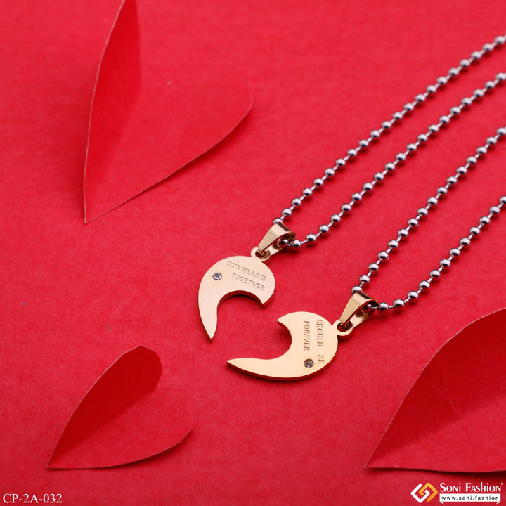 Celebrate your love with our Hearts Together Forever locket set. Featuring a textured stainless steel locket, personalized with a love letter, and matching silver and golden chain pendants. Made for lovers,...