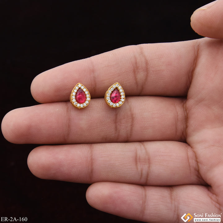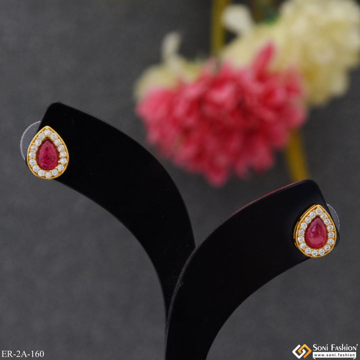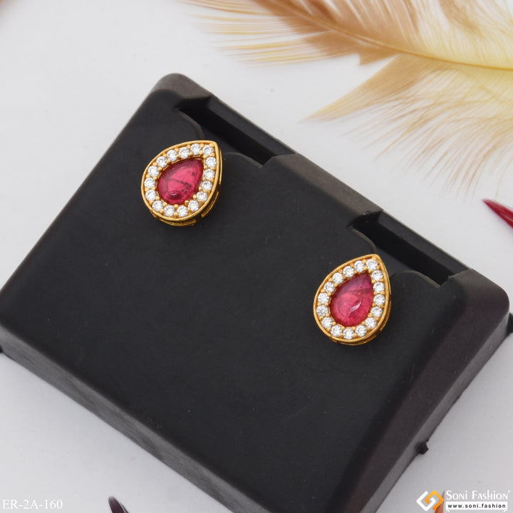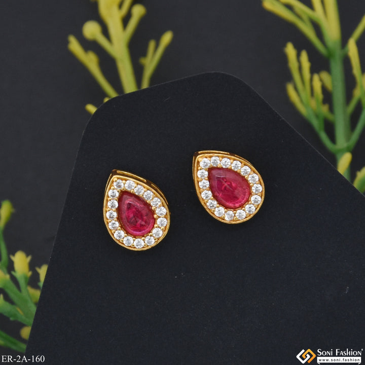 Pink Stone Eye-Catching Design Gold Plated Earrings for Ladies - Style A160