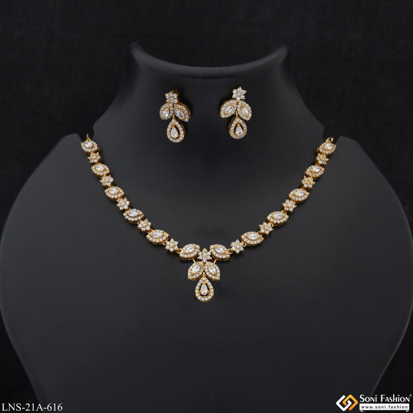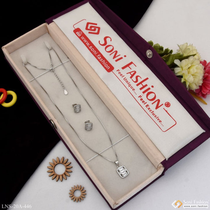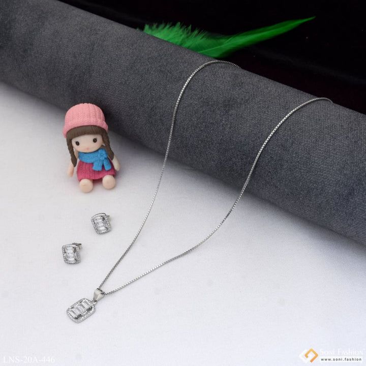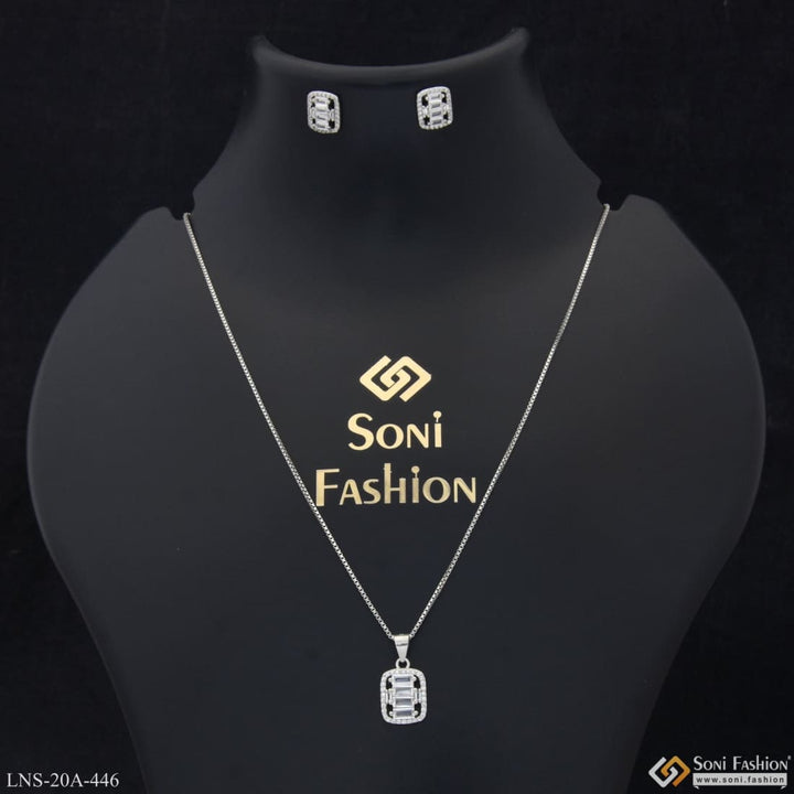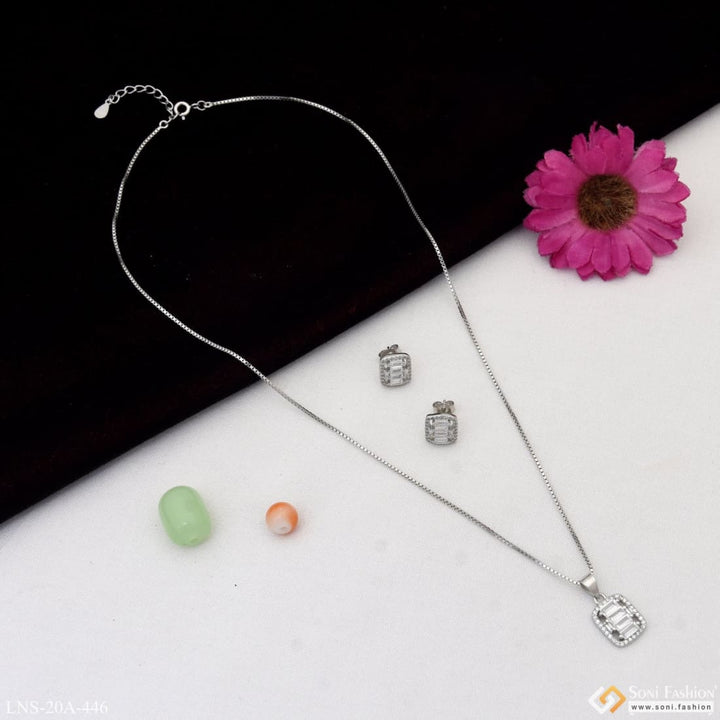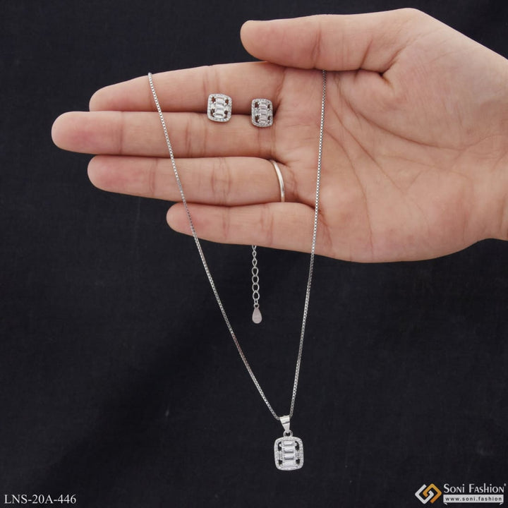 Silver with Diamond Brilliant Design Silver Necklace Set for Lady - Style A446