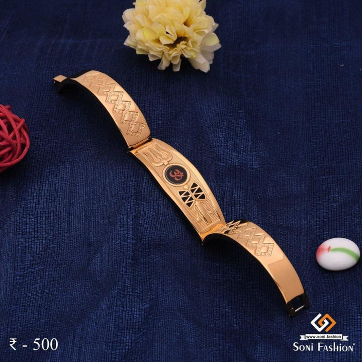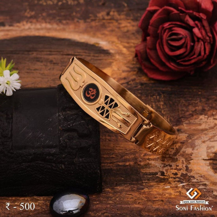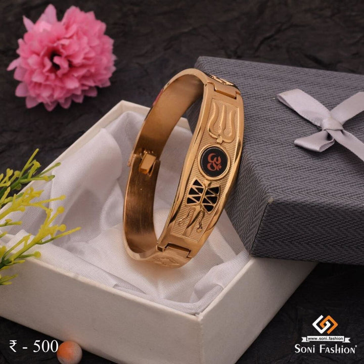 Trishul With Om Extraordinary Design Gold Plated Kada for Men - Style A306