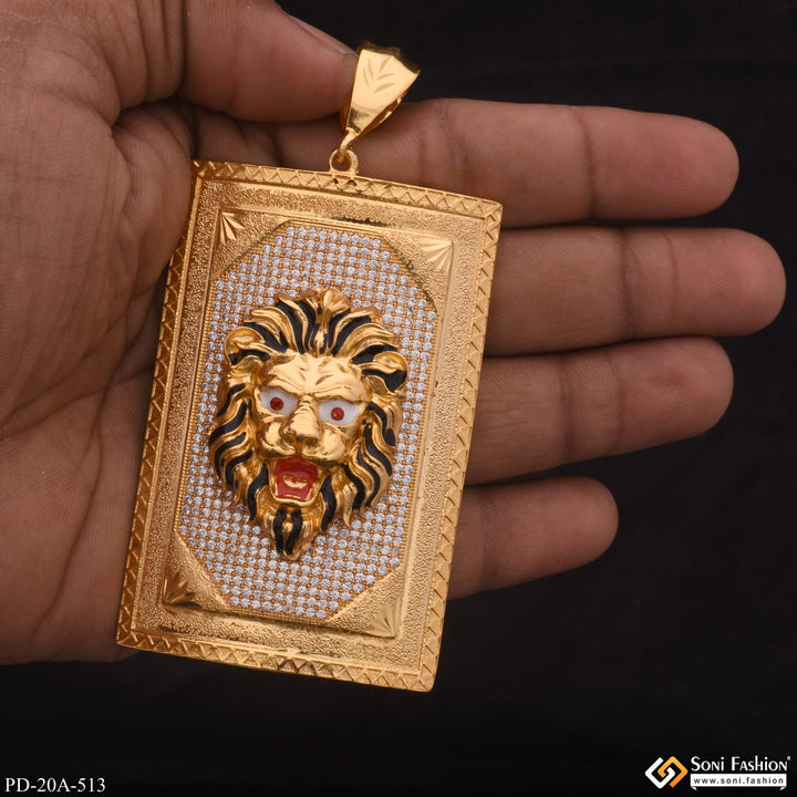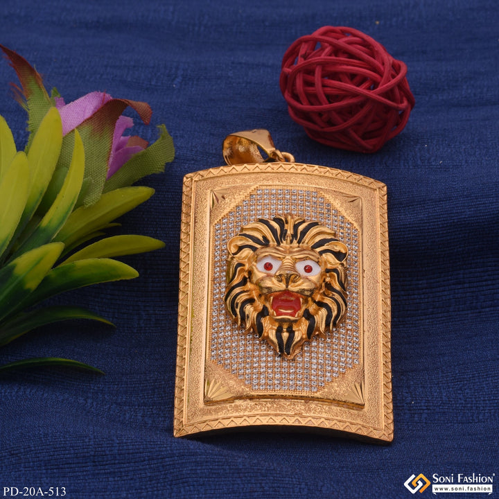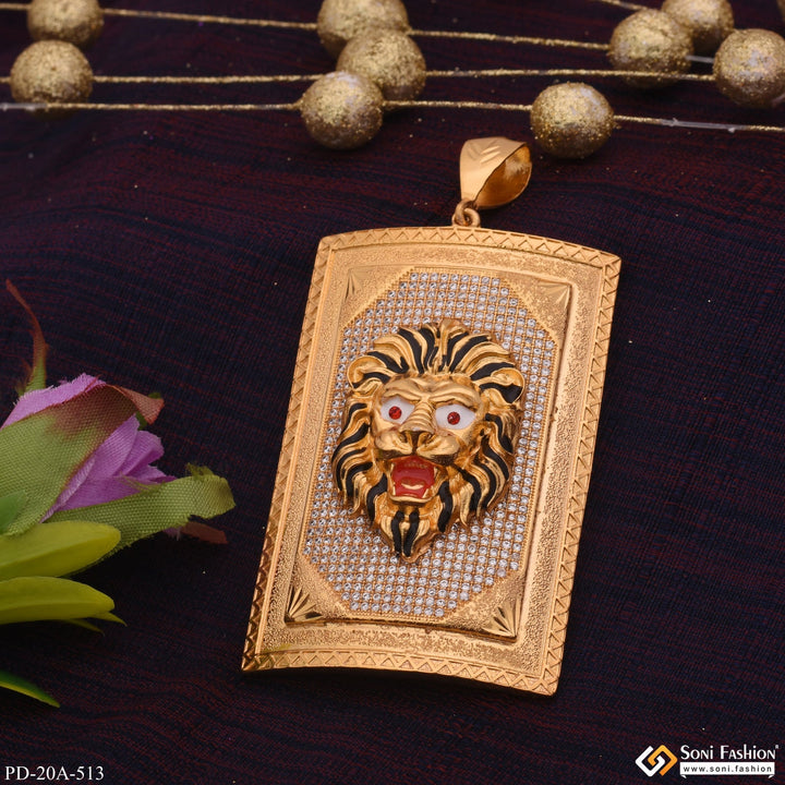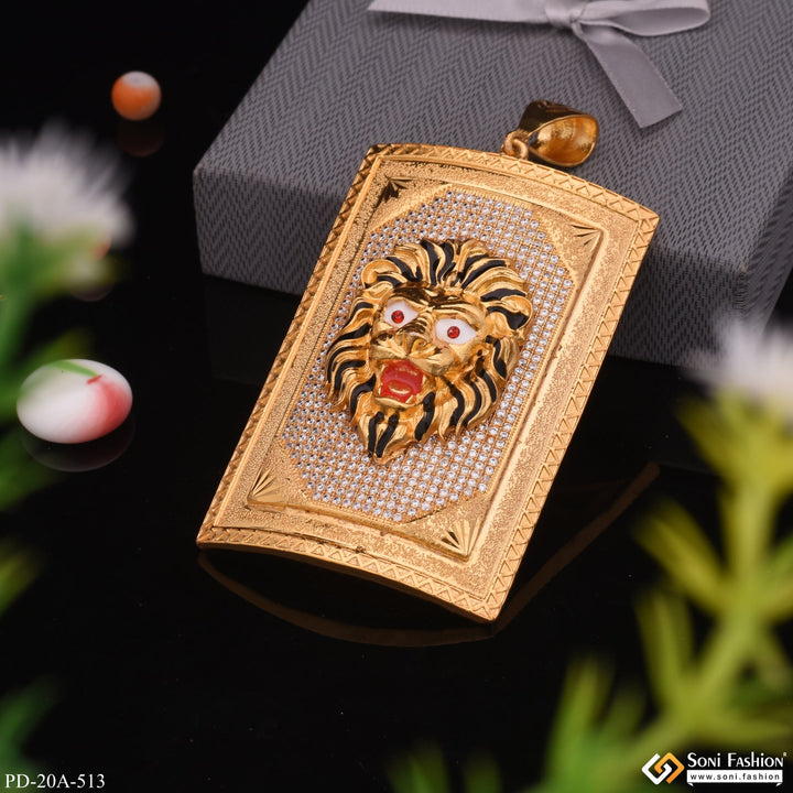 Very Big Size Lion In Diamond Background Gold Plated Attractive Pendant - Style A513